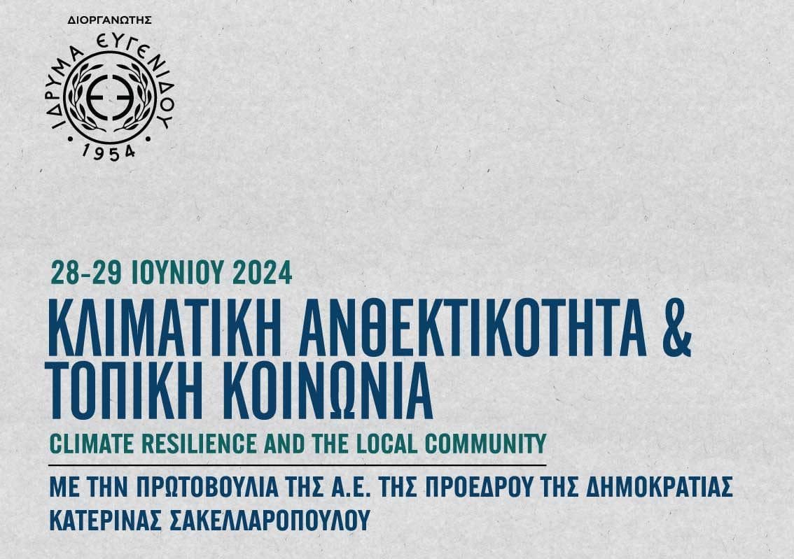 Με πρωτοβουλία της Προέδρου της Δημοκρατίας Κατερίνας Σακελλαροπούλου, το Ίδρυμα Ευγενίδου διοργανώνει, στο πλαίσιο της Πρωτοβουλίας 21, με τη συμβολή του Εθνολογικού Μουσείου Θράκης, της Περιφέρειας Ανατολικής Μακεδονίας & Θράκης, του Δήμου Αλεξανδρούπολης και του Δημοκριτείου Πανεπιστημίου Θράκης, συνέδριο με τίτλο «Κλιματική Ανθεκτικότητα και τοπική κοινωνία» στις 28 και 29 Ιουνίου 2024. Το συνέδριο θα διεξαχθεί στην Αλεξανδρούπολη με τη συμμετοχή ειδικών στον τομέα του περιβάλλοντος και της κλιματικής αλλαγής, εκπροσώπων των τοπικών αρχών και της κοινωνίας των πολιτών.