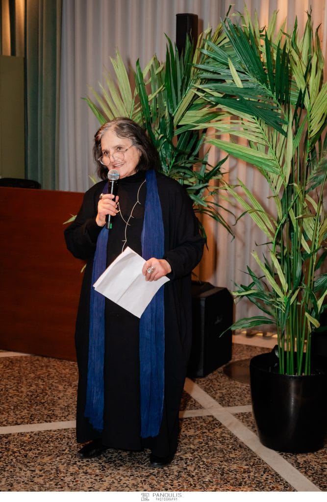 Η Ξένια Καλδάρα, πρόεδρος του Ιδρύματος Μιχάλη Κακογιάννη, που σε στενή συνεργασία με τον ΕΜΘ έχει φιλοξενήσει εκθέσεις του.